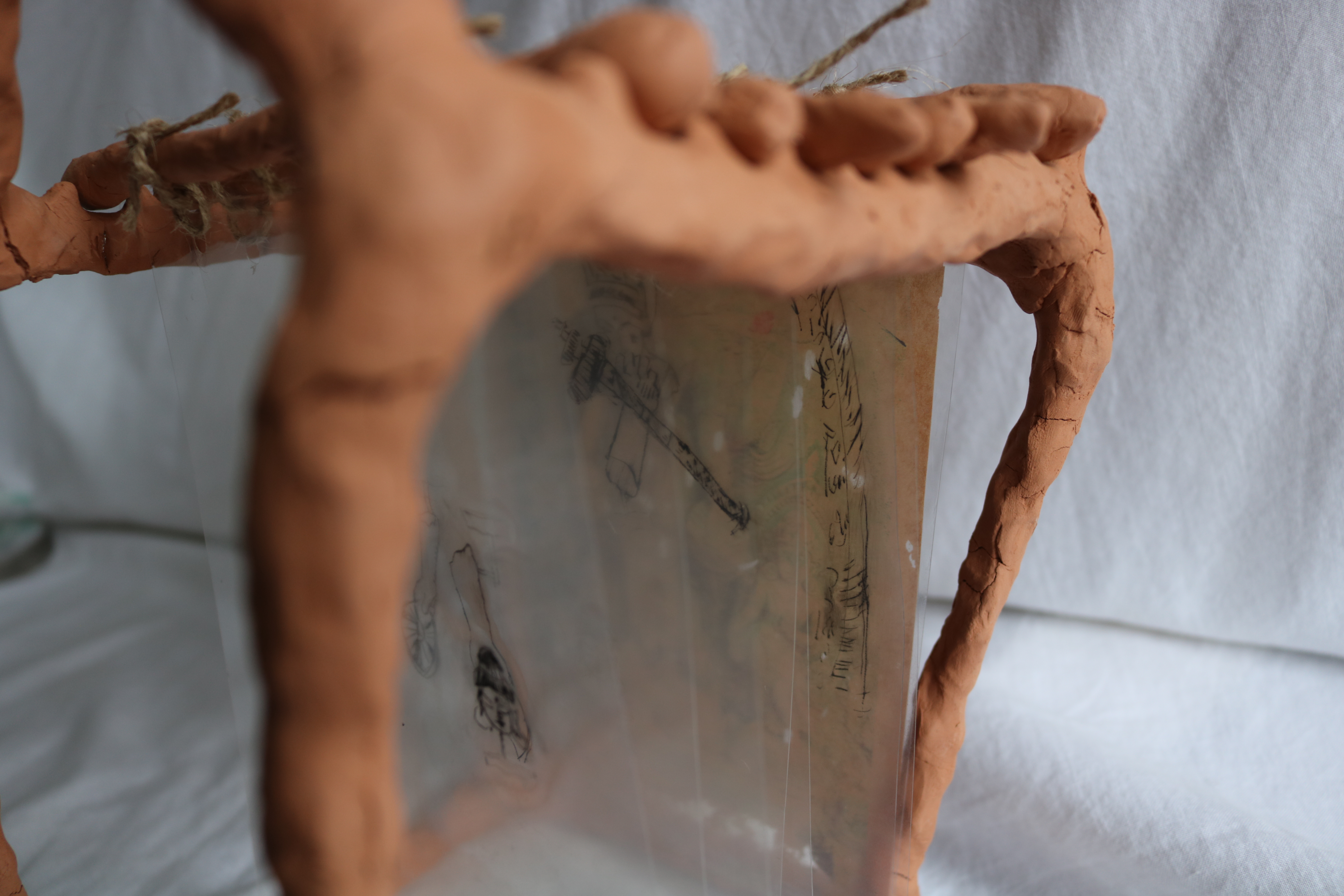 The piece is a product of the artist’s research in the theft of art from Nepal’s temples/shrines. Sculptures and carvings of deities are often stolen and illegaly exported out of the country; many finding themselves on sale in auction houses or on display in museums all around the world, such as the British Museum, Berlin Museum and Dallas Museum.